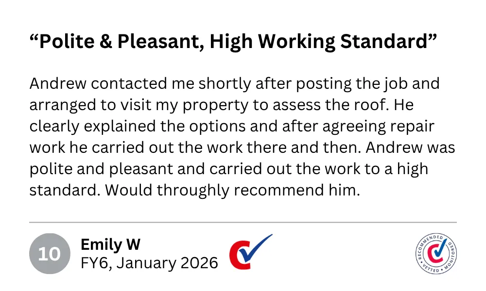 "Hi I'm Andrew and I've been roofing in Wigan & Greater Manchester for over 7 years. I started this business with one goal - to give homeowners a straight, honest service without the hard sell or hidden costs.